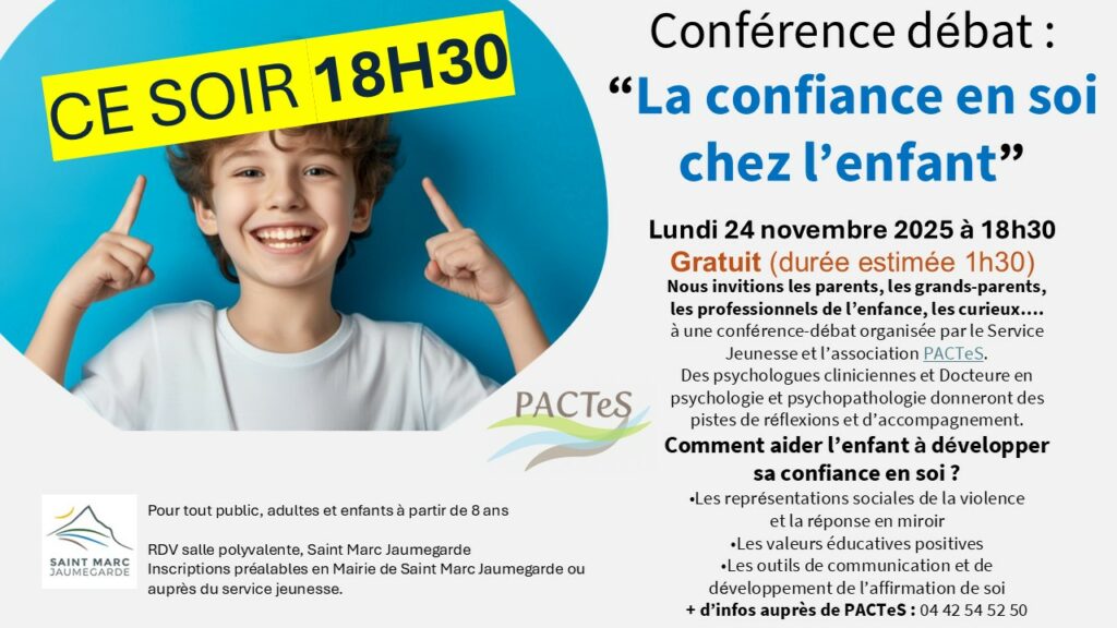 VOUS ÊTES ICI : saint-marc-jaumegarde.fr/ > Actualités > Jeunesse > Conférence débat : la confiance en soi chez l’enfant